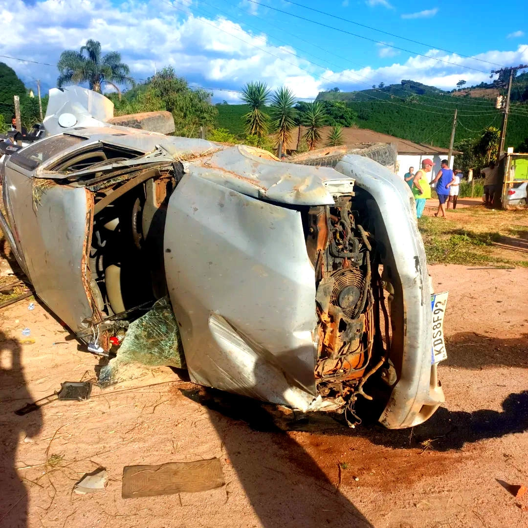 De acordo com a Polícia Militar, o veículo era conduzido por Juliene Aparecida Tardem Matos, de 32 anos. Ela relatou que seguia com sua mãe, Nilza de Fátima Tardem, e três filhos menores, quando o sistema de freios apresentou falha ao descer o trecho conhecido como “Morro dos Padres”. Sem conseguir controlar a direção, a caminhonete saiu da pista e capotou várias vezes, parando em um terreiro de café.