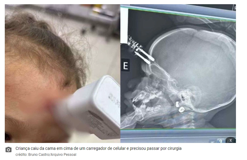 MG: Menina de 1 ano cai em cima de carregador de celular e fica com e...