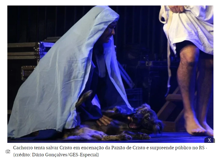 Cachorro tenta salvar Jesus em encenação da Paixão de Cristo; veja