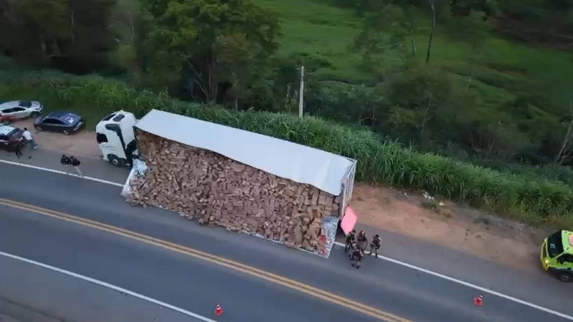 Carreta com biscoitos tomba na BR-116 e carga é saqueada por populares